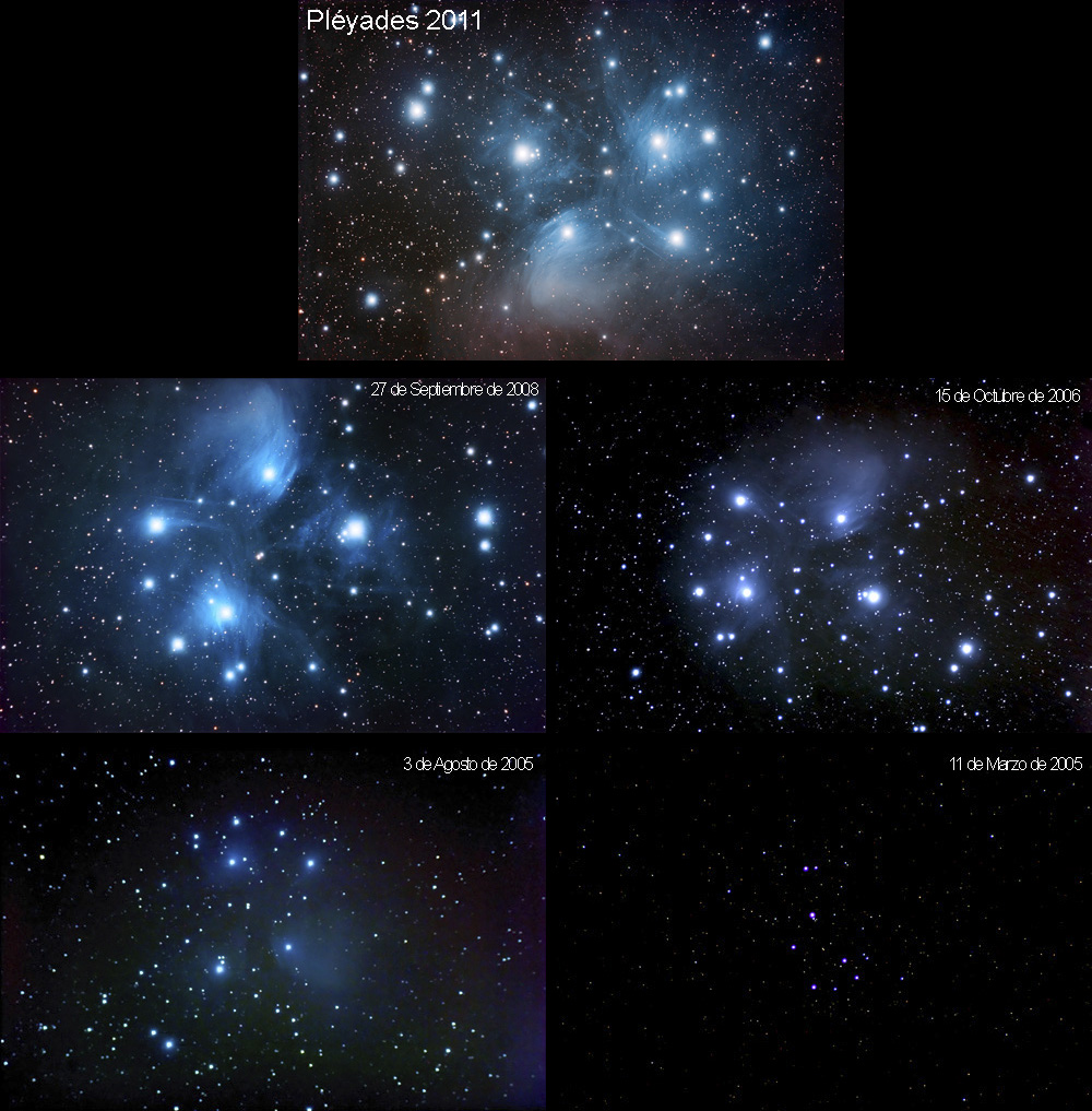 Las Pléyades constituyen el más hermoso y reconocible cúmulo abierto del hemisferio norte. Lo forman unas 500 estrellas, de las cuales 6 son perfectamente visibles. Estas estrellas principales son jóvenes y están rodeadas de una zona de nebulosidad, pero según los últimos estudios podría ser que la nebulosa no pertenezca a las estrellas, sino que éstas están atravesando una zona de nebulosidad. La IC 349 es la nebulosa que rodea a la estrella Mérope, de la que recibe su nombre.